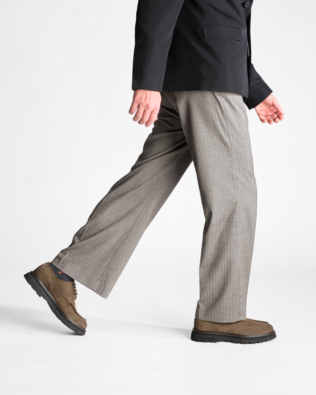 Жёсткая граница между деловой и повседневной обувью стирается. Кожаные туфли теперь уместны с расслабленными брюками, трикотажем, неформальными пиджаками. Этому способствует и изменение кроя: укороченные и слегка расширенные брюки «открывают» обувь, делая её заметной частью образа.